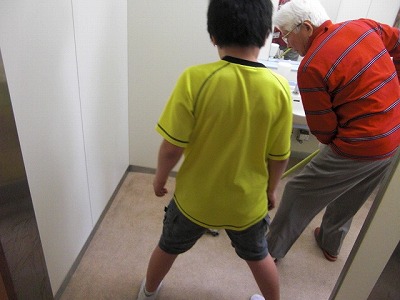 22日にトイレ掃除ボランティアの方に、1年生のトイレ掃除を一緒に掃除していただきました。