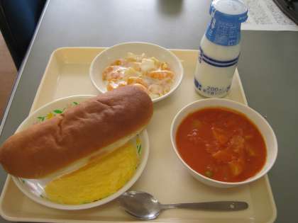今日のデザートはパインアップルや黄桃、みかんをヨーグルトと合わせたフルーツヨーグルトでした。果物の自然な甘さとヨーグルトのまろやかな酸味がマッチしたデザートでした。