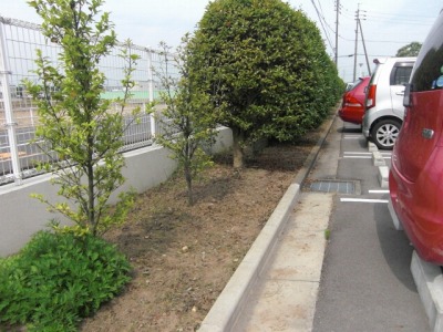 24日の除草ボランティアの方々に、来賓・職員駐車場の北側にある植え込みの下回りをきれいにしてもらいました。ありがとうございました。
