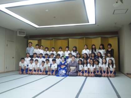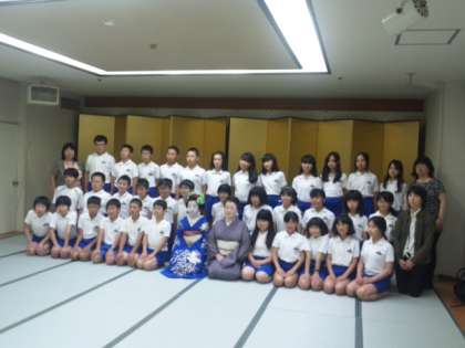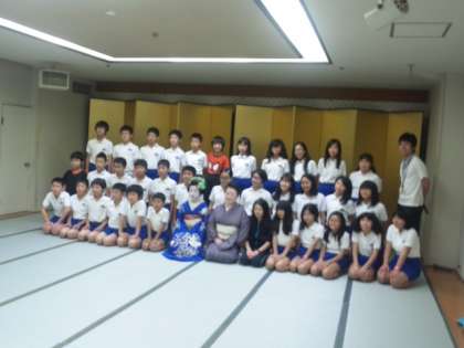 舞妓さんとの記念撮影です。近くで見る舞妓さんは小柄で、目尻の紅がとてもかわいらしいかたでした。