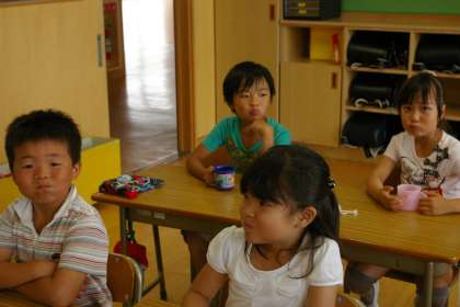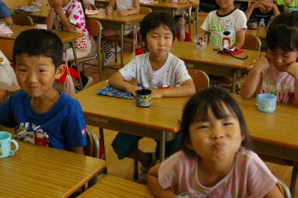1年生は、フッ化物洗口を行いました。今日は初めての取り組みでしたが、みんなとても上手にできました。1分間のブクブクうがいは意外と時間が長く感じるものですが、みんなの大好きな曲とともに、楽しくできました。フッ化物洗口をすると、むし歯予防につながるそうです。これから毎週月曜日の朝は、口の中もすっきりして、1週間の学校生活を気持ちよくスタートしましょう!