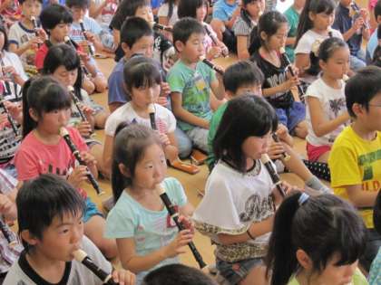 どんな子も集中し,一生懸命練習していました。授業の最後には,大きなリコーダーから小さなリコーダーまで紹介してもらい,先生のすばらしい演奏を聴くことができました。