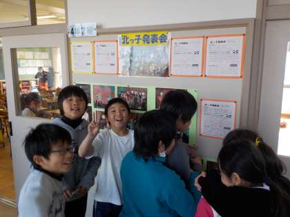 4年2組の掲示板に、北っ子発表会のふり返りコーナーが登場です。