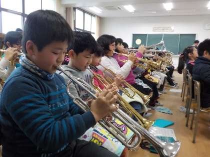 鼓笛のメロディーラインは、トランペットが引っ張ります。