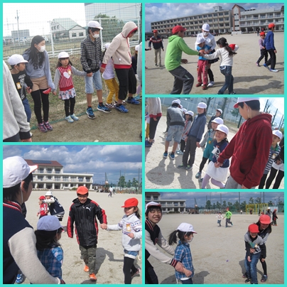1年1組と6年1組は『手つなぎしっぽとり』を行いました。