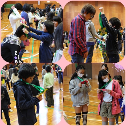 「6年生を迎える会」で身に付けるペンダントを2年生からプレゼントしてもらいました。