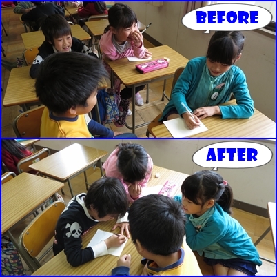 上の写真は,1回目の様子で,下の写真は,最後の回の様子です。