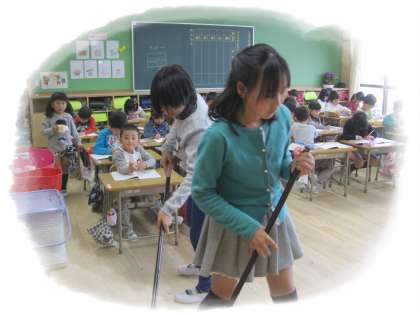 掃除の時間は、6年生のお兄さん、お姉さんがお手伝いにきてくれます。