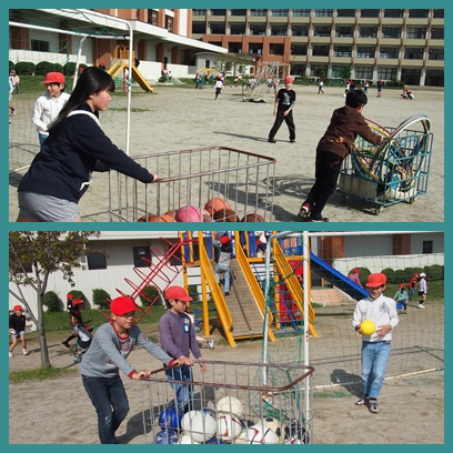 今日の朝のことです。体育委員会の子が「遊具が朝礼台前まで出ていない」と気付き、運動場へと駈け出していきました。