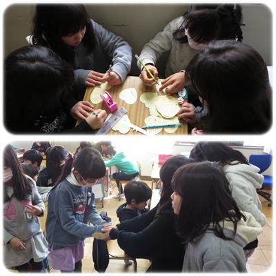ハートをもらった子は,嬉しそうに友達と見せ合いっこをしていました。