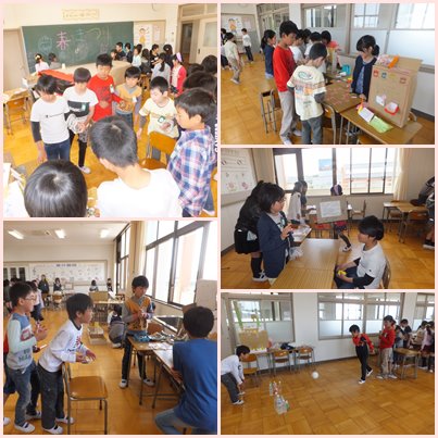 「春祭り」当日は,お客さんの好プレーに大きな拍手がわき,どの店も大盛り上がりでした。射的,わなげ,ボウリング,ビー玉すくい,都市伝説の語り,魚すくい,宝物釣り,折り紙屋のお店がありました。どのお店も工夫が盛り込まれ,とても楽しく活動できました。