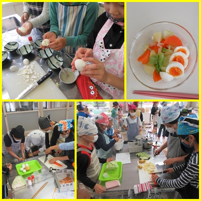昨日の計画を今日実践!昨日、班の仲間と綿密に計画を立て仕事を分担していた子どもたち。その成果もあり、大満足の調理実習となりました。包丁で切る人、ゆでる人、1秒たりともゆで時間を間違えないと時計とにらめっこする人、先に洗い物をして片付けを始める人などなど。それぞれが自分にできることを考えて行動していました。最後の片付けでは、自分でほうきをもってきてピカピカに掃除している姿も見られました。