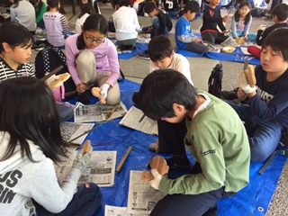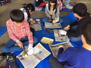 角をヤスリで削っています。丸く、ツルツルにできるかな?