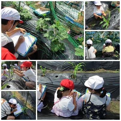生活科で育てている野菜がぐんぐん育っています。前はなかった蕾ができていたり,花が咲いていたり,伸びていたり・・・ 前回との違いに注目しながら観察することができました。これからの成長が楽しみですね。