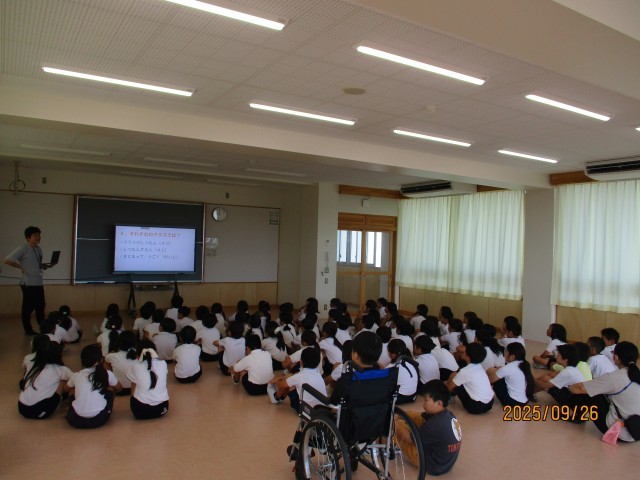 先週の金曜日2時間目に、二年生の学年集会を行いました。今後予定されている図書館、給食センター訪問の説明を受けたあとに、学校や学校外での生活面についての話を聞きました。子どもたちは真剣に耳を傾け、学年全体で意識をそろえる良い機会となりました。
