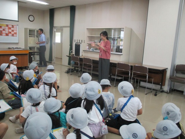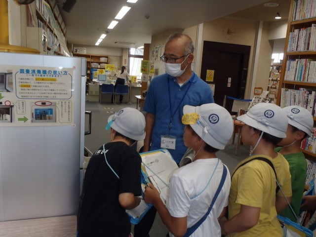 生活科の学習で、図書館、公民館、給食センターの見学に行きました。地域で働く人の様子や、施設の役割について多くのことを学ぶことができた時間になったと思います。図書館では、本についてのことや、図書館の工夫などを教えていただきました。公民館では、地域の人が集まって大正琴を演奏する様子を見学させていただき、お話を聞きました。給食センターでは、その日の給食をどのように作るのかを見学し、気になることを質問して、学ぶことができました。