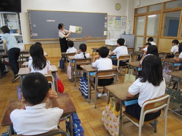 朝の読書タイムに、ぐるんぱさんによる読み聞かせをしていただきました。1組は、「うでのいいくつや」2組は、「あおい玉 あかい玉 しろい玉」3組は、「たのしい ふゆごもり」でした。どのクラスも毎回、どんな話かとても楽しみにしています。今日も、目を輝かせながら真剣に話を聞いていました。「読書の秋」ですので、いろいろなジャンルの本に親しんでいってほしいですね。
