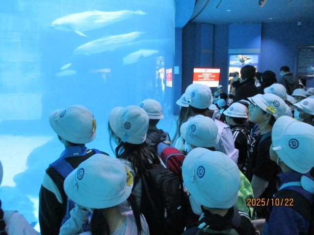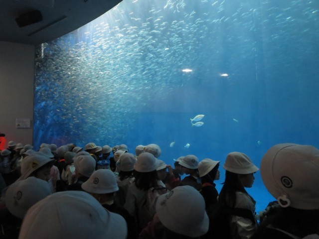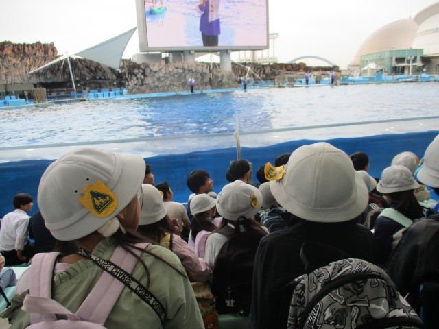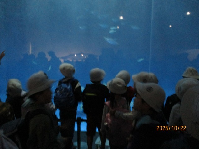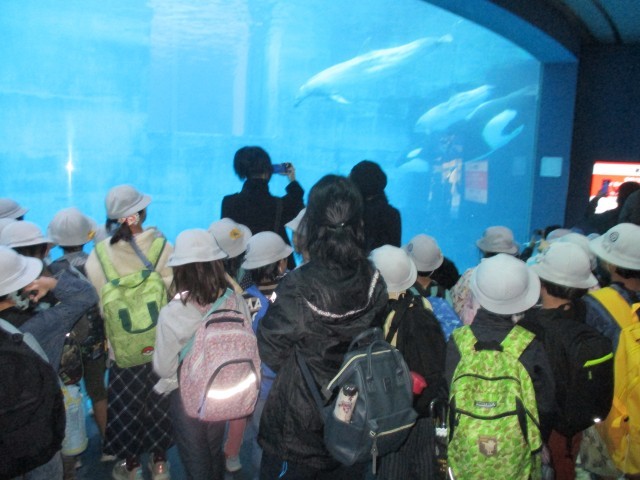 館内では、クラスごとに見学をし、イルカショーでは、ジャンプをするイルカやさまざまな様子のイルカを見て楽しみました。水の中にいる生き物を間近で見ることができ、子どもたちは、目を輝かせていました。