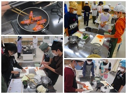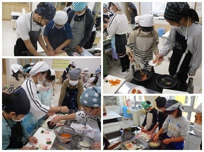 1組は10月30日、2組は11月7日、3組は11月5日に調理実習を行いました。今回の献立は「野菜のベーコン巻き」です。茹でた人参といんげん、えのきだけをベーコンで巻いて炒めました。班のメンバーでしっかり協力して、調理することができました。できあがったら、いただきます!みんな笑顔で食べた後は、片付けまでしっかりできました。これで作ることができる料理がまた一品ふえましたね。ぜひおうちでも作って、家族で食べてみてくださいね。