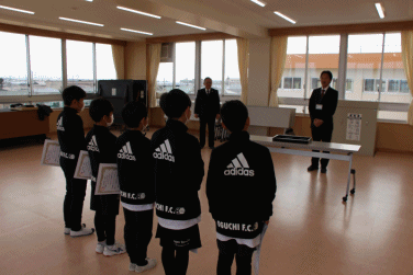 校長先生からは、継続していることの素晴らしさをほめていただくとともに、スポーツに取り組むことで、今以上に人間性を磨いていって欲しいと期待の言葉をいただきました。