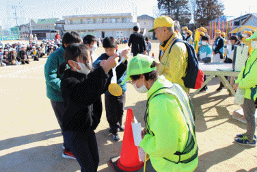 5時間目の通学班集会後の運動場で、安心パトロール団の皆さんへの「感謝の会」が行われました。