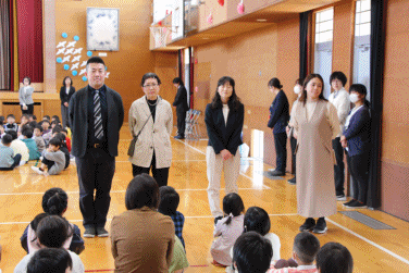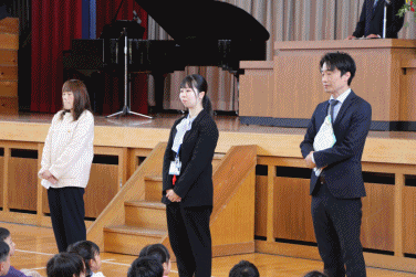 校長先生から、担任の先生の発表がありました。1年間一緒に学級を作っていく先生です。素敵な出会いの一日にしてくださいね。
