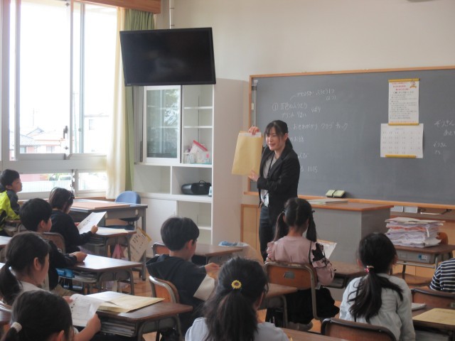 3年生の子どもたちは、理科、社会、地図帳、保健などのたくさんの教科書に驚きながら、わくわくしているようすでした。
