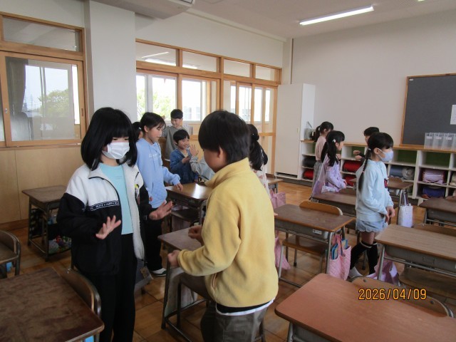 学級開きのあとに、新しいお友達とじゃんけんゲームなどをして楽しく交流しました。