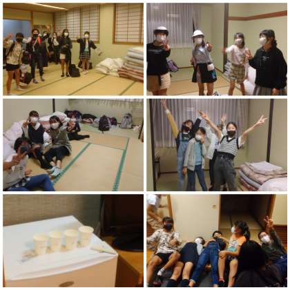 女子部屋 公開日 2021/11/03 更新日 2021/11/03 6年生修学旅行 夕飯までの時間、思い思いにリラックスしています。紙コップを間違えないよう名前を書いたり、明日のペットボトルを冷やしたり、女子チームてきぱき進めています。