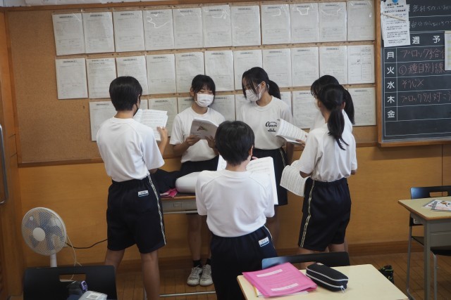 1学期に行った学級別対抗群読大会もそうでしたね!練習を始めた学級に合わせて、周りに広がっていきました。皆さんはすでに群読大会に向けて学級の子たちと「協力」して一つの作品を創り上げる経験をすでにしています。その経験を存分に発揮してくださいね♪