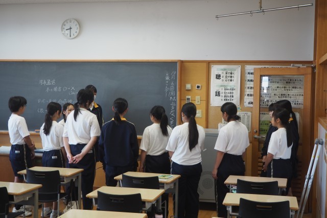 さて、本日月曜日の朝、学年フロアを見て回ると、2組と5組が早速練習をしていましたね!隣の教室から歌声が聞こえてくると、「私たちの学級もはやくやらないと!!」という気持ちになるのではないかな?