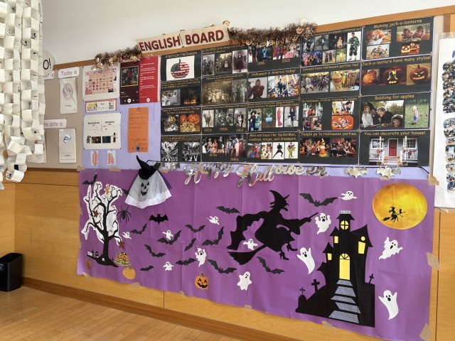 外国人講師のブライアン先生がせっせと掲示してくれました。