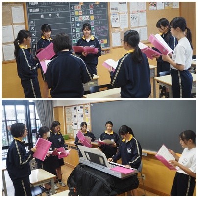 学級合唱だけでなく当日は学年合唱もあります。学年合唱を行う前には学年独自の「あれ」をやりましょうね!覚えていますか?群読大会前にやった「あれ」です笑 その練習もしないといけないですね笑