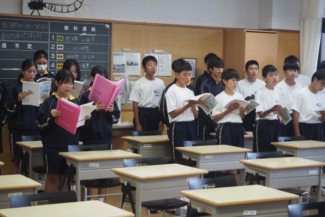 朝は各学級、合唱練習をしていました。昨日の学年合唱の練習、本当によかったです。1回目とは思えない皆さんのパワー!アドバイスをいただいた後に修正する力!!1回目よりも2回目、3回目と回を重ねるごとに情景が思い浮かぶような歌声が響いてきましたよ!!