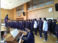 合唱コンが終わり、普段の学校生活が戻ってくるかと思いきや、3年生は卒業に向けて着実に準備を進めています。今日は、卒業アルバムに載せる学級写真を撮りました。今日は風も強く、外で撮ったクラスは髪の毛を整えたり、目を開けたりするのに苦労していました。どのような写真になっているかは卒業アルバムを楽しみにお待ちください。今週はテストがあります。卒業に向けて準備を進めつつ、勉強にも励んでいきましょう。頑張れ、3年生!