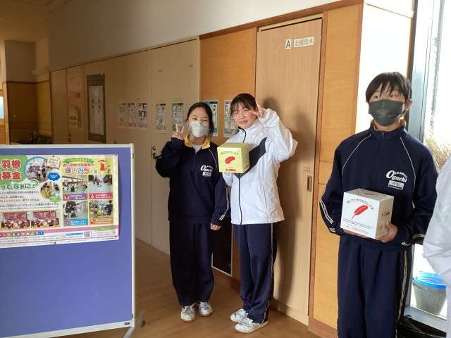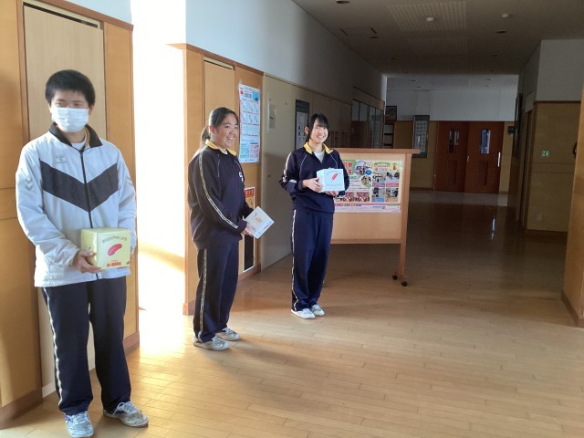 福祉委員の生徒たちが、寒い玄関で「募金お願いします」と呼びかけてくれています。