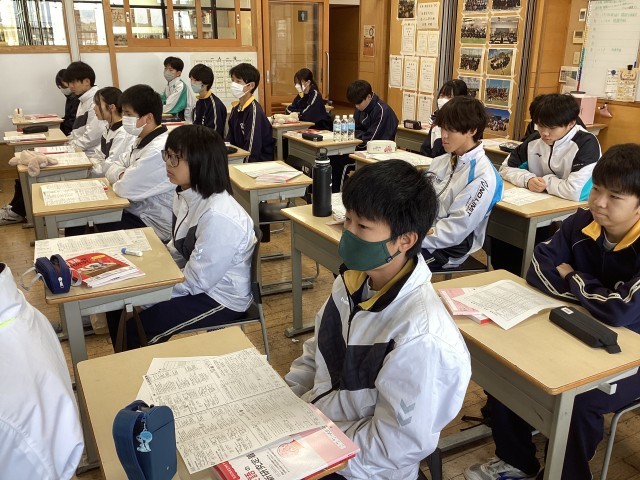 今朝は、新研究(問題集)の取り組み方説明がありました。