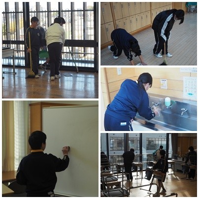 日々、使用する校舎がきれいに保たれ、心地よく学校生活が送れているのも、生徒の皆さんが一生懸命に清掃してくれるからです。本当にいつも時間いっぱい集中して黙々と清掃に取り組んでくれてありがとう。生徒の皆さんには感謝です。