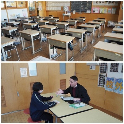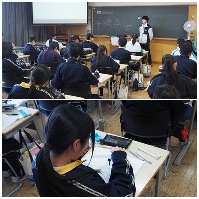 移動教室だったのが4組だけでした。机上を見てみると??机上0です♪3組の数学では円とおうぎ形の授業を行っていました。そのときに「円周率を言える?」という話題になり、男子生徒が円周率を言ってくれました。正解を確認しながら、聞いていくと、なんと合っている!!「すごい!!」3組の教室では歓声が上がりましたね!