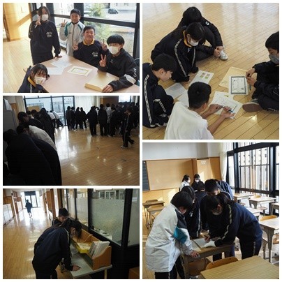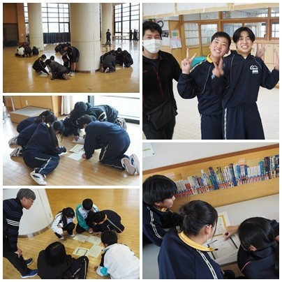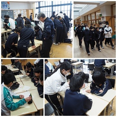 春の校外学習のとき、皆さんが入学して間もない頃に行った謎解きの姿と今回の謎解きの姿を重ね合わせたときにどの子も「たくましく中学生らしく成長したなぁ~」と感じながら皆さんの様子を見ていましたよ!
