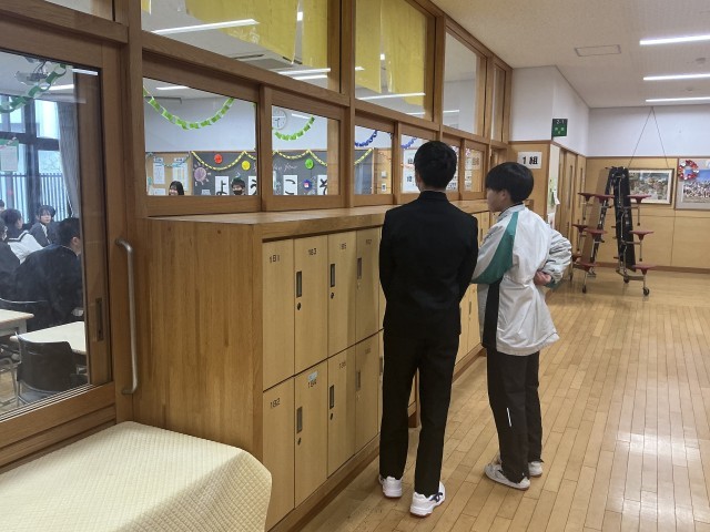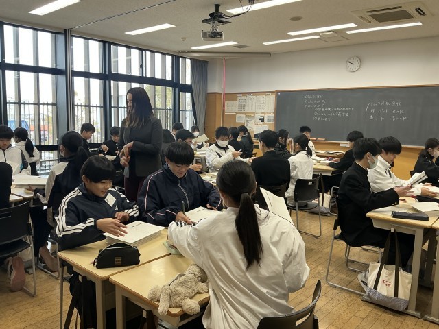 学活では、担任の先生の話を聞いたり、課題を仲間同士でチェックしたりしていました。