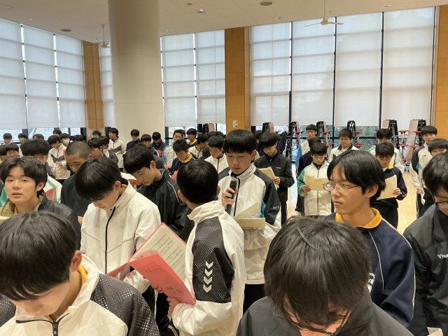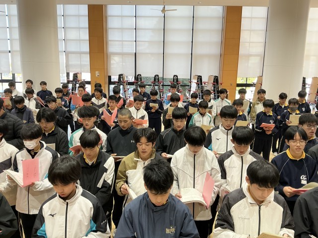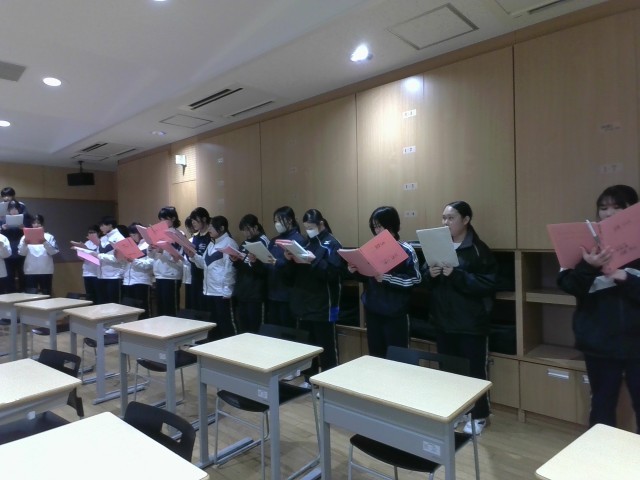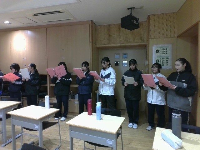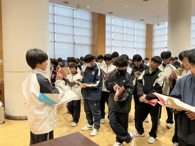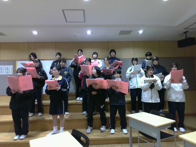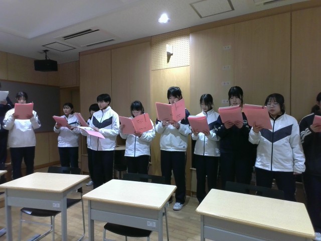 いつもは待っている間は教室で自習をしていますが、今回は合唱練習に取り組んでいます。