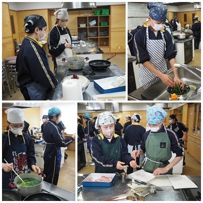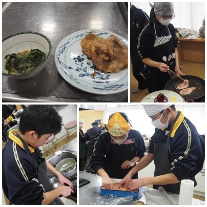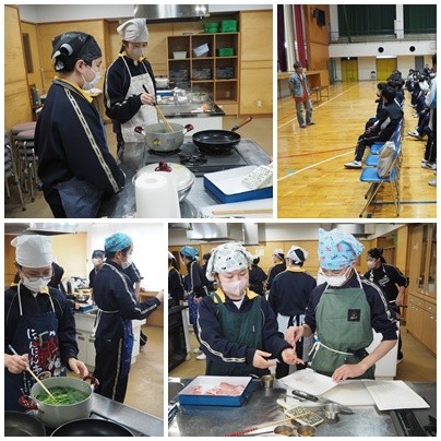 午前中3時間目と4時間目に4組が調理実習を行っていました♪男子級長の子が先生を招待してくれました!職員室から調理室へ近づくにつれて良い匂いが♪