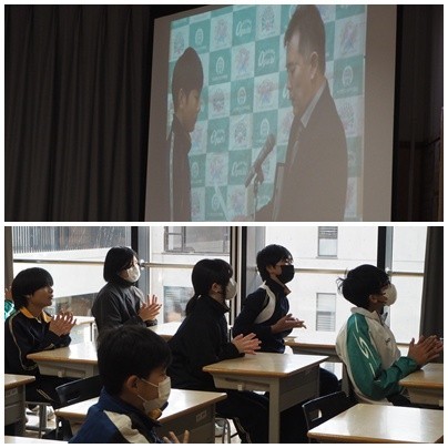 本日、5時間目の後は全校夕礼がありました。いつもは体育館で行いますが、今回はTV放送による全校夕礼でした。