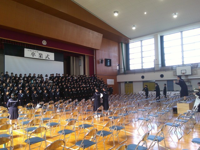 本日は卒業式練習、合唱練習、学年集会、卒業式予行を行いました。学年集会は生徒から先生方へのメッセージや、学年主任の先生へのサプライズ合唱もあり、とても温かい雰囲気の素敵な会となりました。卒業式予行では、これまで練習してきた動きをしっかりと確認できました。登校するのは残り2日間、学校生活を送るのは明日で最後です。充実した1日にできるとよいですね。