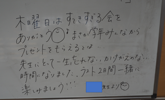 そこにはなんとK先生からのお礼の言葉が書かれていましたね♪K先生、ありがとう!!