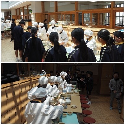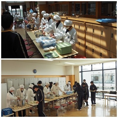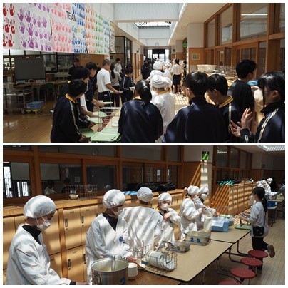 給食準備は学級のチームワークが求められます。ただの準備の作業ではない。仲間とともに創り上げる大切な時間であり、チームワークの力が最も分かりやすく表れる場です。一人ひとりの意識と行動が、クラス全体の動きをつくっていることを忘れずに、これからも日々の給食準備に取り組んでいきたいですね!