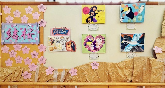修学旅行までの登校日が、一桁になりました。今週から時間割通りの授業がスタートしつつの学力検査、など日々あわただしく生活している3年生ですが、気づくと修学旅行まで登校日が一桁になってしまいました。忙しさに流されず気持ちを高めて修学旅行に出発するためにも、準備を進めていきたいものです。「結桜」の横に修学旅行が題材の作品を展示しました。どの作品も力作ぞろいなので、ぜひ作品からワクワクが感を味わってください。それから、作品に温かいコメントを添えてくれた実行委員の皆さんステキです!ありがとう!